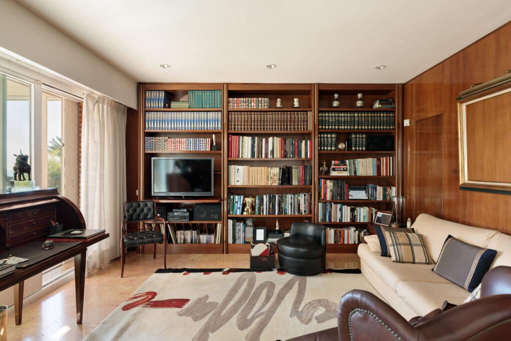 Accessed via an elegant roundabout centered around a century-old olive tree, the entrance immediately reflects the home’s distinguished character.