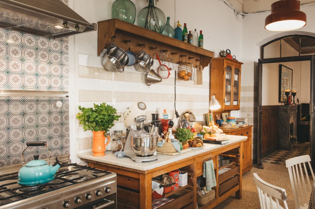 Inside, a serene study and library, an authentic Menorcan kitchen, an elegant dining room, and a welcoming living room with a fireplace create an environment where sophistication and comfort align perfectly. Original sash windows, vibrant hydraulic tiles, artistically wallpapered ceilings, and a majestic stone staircase highlight the exceptional craftsmanship preserved throughout the restoration.