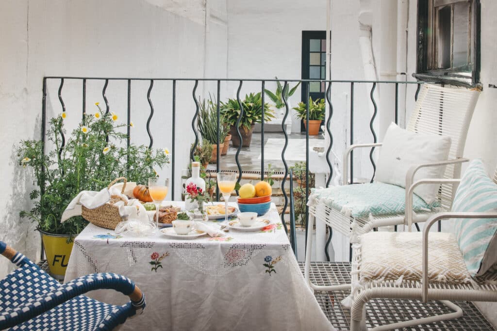 The exterior spaces are equally compelling. The two-level Mediterranean patio forms a true oasis within the estate: a 20 m² lower patio, surrounded by native vegetation and centered around a long wooden table for relaxed meals and intimate moments; and a 35 m² upper terrace that invites evenings under the warm Menorcan sky.