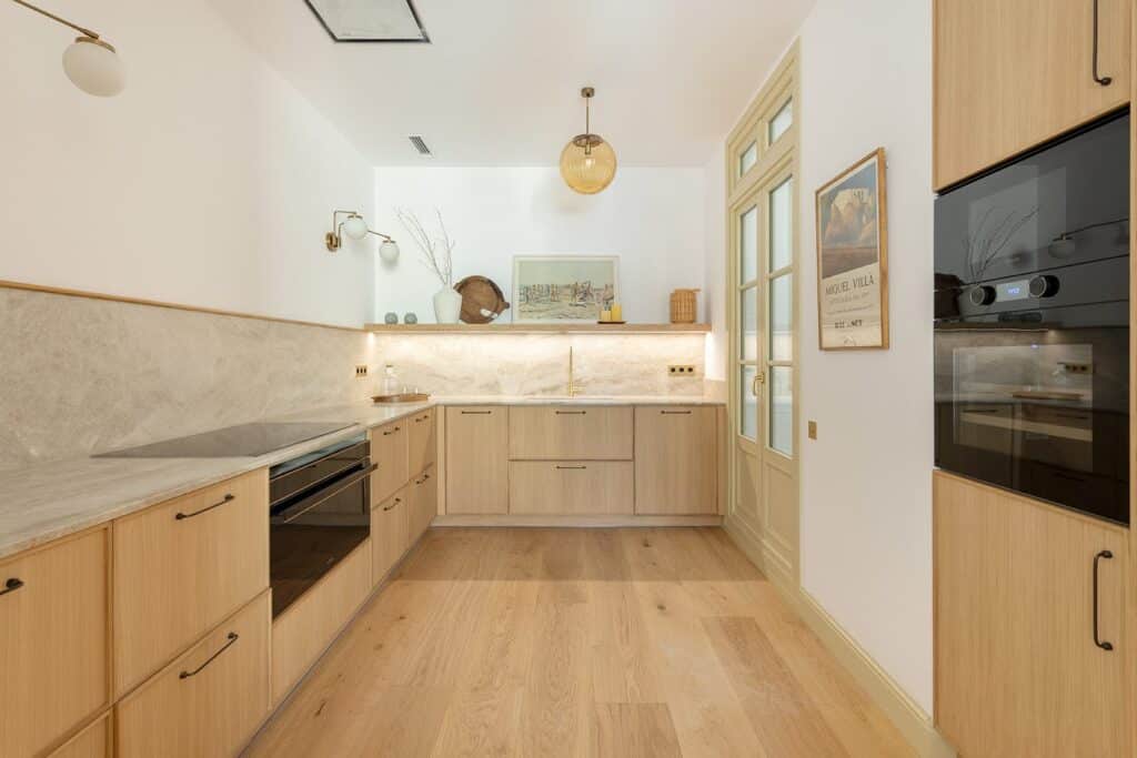 The renovations focus on craftsmanship, authenticity, and detail, preserving the original architectural charm while introducing contemporary comfort. Traditional Catalan vaulted ceilings run throughout, enhancing the sense of space and brightness. The living areas form the heart of each home, featuring floor-to-ceiling windows that open onto tranquil terraces, complemented by handcrafted local tiles and design elements that differ subtly from one apartment to the other.